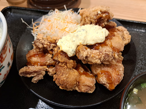 吉野家では一部店舗で唐揚げを取り扱っていない店舗がありますが、こちらの春日部緑町店は唐揚げを取り扱っているので、毎回注文しています。 写真は2023年8月利用時ですが、味噌汁が変わっているのに気づいた日です。 もう定着していますが、あおさ入りの味噌汁に変わっていて美味しくてびっくりしたのを覚えています。