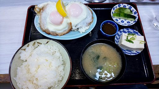 R7 7/18晩御飯🌃🍴 20年以上前から気になっていたラーメン店。いつもは斜向かいの、がんこや🍜だけど、たまにはと思い初凸。 ラーメンが売りなのだろうけど、ご飯物のメニューも豊富にあったので、ラーメンやめてチャーシューエッグ定食🍳🐷 ¥900に即決!これが俺的に大当たり🎯 写メ見て頂けたら納得される筈。大判目玉焼きに抱えられたチャーシュー🍳が二つも😊別添え小鉢に入ったソースをたっぷり掛けて、そのまま崩さずに丼飯の上に・・・あとはお店で体験して下さい😋 他に瓜漬と冷奴と丼飯とお味噌汁が付いて、税込み¥900はかなりコスパ良いと感じました✨餃子🥟も小振りながら中身ぎっしり6個で税込み¥450。合算で税込み¥1350💮ワ~安い👏 店内は5席のカウンター席と複数のテーブル席(座敷も有り)有り。出入口脇に喫煙場所もあります❗️トイレは出入口入り左奥。駐車場5台程度は止められます🅿️トラック不可。 営業時間も夜22:00迄(Lo21:30)と長め。 次回は麺類にしてみるか😆 R7...