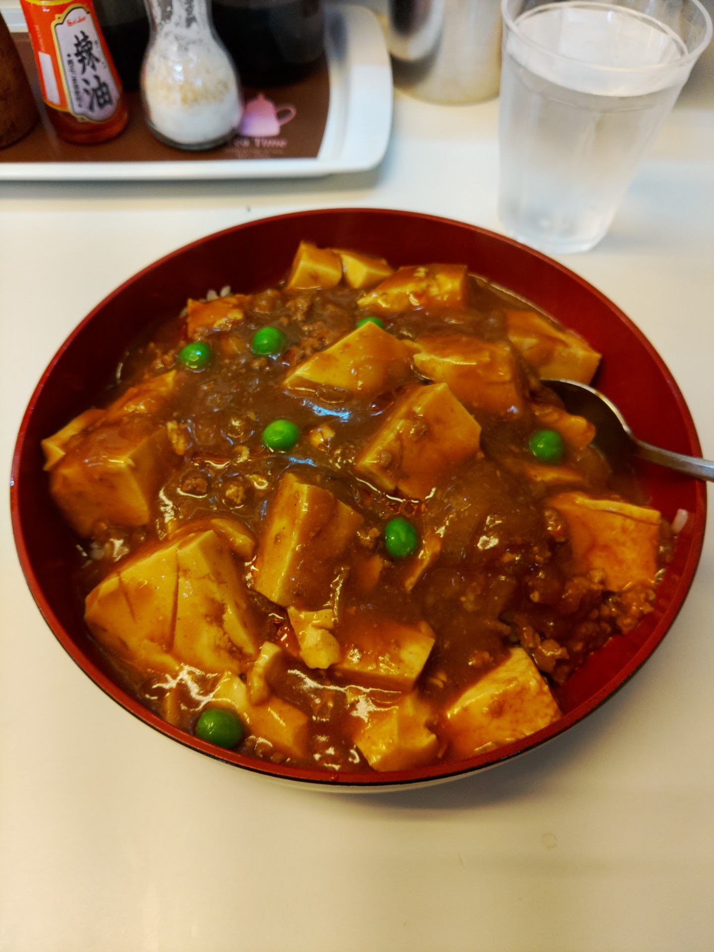 海老チリは期待を大きく越えてきた。 海老は大降りでブリッブリ。 酸味は生レモン。 個人的にはもう少しチリが欲しいところだが、町中華のレベルではない。 撮影の後からラーメンスープと取り放題の辛子高菜が出てきた。