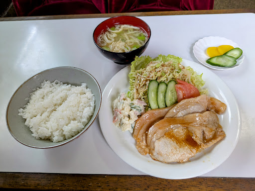 国道7号脇の気になる店サフランで昼食。 ビロード張りの椅子が店内の雰囲気に合っています。常連客のマダムがカウンターで楽しそうにママさんと話しています。 日替りランチを確認すると本日は豚丼か生姜焼きとのこと。ご飯に合う甘じょっぱく焼いた豚ロース3枚と生野菜・マカロニサラダが皿にドンと乗ってます。 食後のコーヒーが付い...