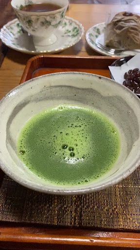 La dame est très serviable et chaleureuse, vous avez un large choix de boissons disponibles, j’ai pris le traditionnel Matcha 🍵 qui est servi avec des haricots rouge sucré, j’ai aussi pris le dessert Mont Blanc au marron qui est très parfumé. Mon mari a pris un café premium blend qui est au goût très subtile et léger.