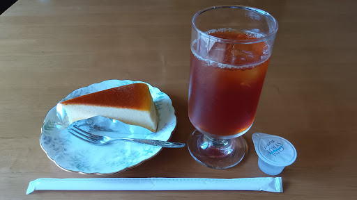 う〜ん、美味いとも不味いとも評価できませんね。チーズケーキは冷凍ですし、アイスティーはグラスにただ注いだだけです。