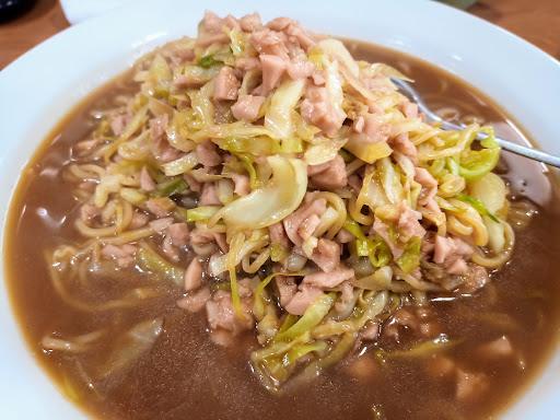 スープカレー焼きそば!何の番組か忘れたがスープカレー焼きそばなるB級グルメをテレビで見て食べてみたかった華蓮。何となくキタナシュランを想像していたが、店構え、店内はきれい。メニューを見るとスープカレー焼きそばという表現ではなく、スープソース焼きそば(カレー味)830円となっている。当然、大盛り+150円で頼む。日曜の昼前なので客は少なかったが、僕の後から来た客も座るなりカレー焼きそばと頼んでいる。厨房から聞こえる鍋を振るう心地よい音を聞きながら待つ。ドーン!浅めのラーメンどんぶりの様な器。そして山の様な盛り付け。追カレー用のカレー粉も運ばれる。具はキャベツと魚肉ソーセージ。スープを一口。おっーと、魚肉ソーセージのダシ、それとキャベツの甘み、ほんのりのソース味とカレー味と絶妙。麺は確かに焼きそば麺。僕は辛い方が好きなので追カレー。なんて事でしょう。更にB級度が増す。お世辞なしに旨い。この味は塩むすが欲しくなる。ご飯頼めば良かった。満腹満足。B級グルメグランプリに出ればいいのに。ググると千葉県香取市の小見川地区には他にもスープカレー焼きそばの流儀ある様だ。他の店も試してみようと思い...