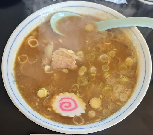 ラーメンのスープが独特の風味でクセになる。 好き嫌いはあると思うが他にはない味。 そのスープの味にハマり長年通い続けてる人も多い様子。 地元ではないが高校時代に過ごした土地なので仕事帰りや休日の買い物の帰りについ寄ってしまう。 価格帯は激安ではないと思うが、高くもなく庶民に優しいと思います。 カレーラーメンや、カレー焼きそばが名物。 それらは食べたことが無いがいつかチャレンジしてみたい。 昨年新装開店したそうで、入店すると正面にカウンター席、左に進むとお座敷があります。 女性の方にはカウンターの椅子が高いようで、物腰が柔らかい店主のオヤジさんいわく座敷に案内することもあるとのこと。 一人での入店でも椅子が高くて気になる方は空席次第だとは思いますが聞いてみると良いです。