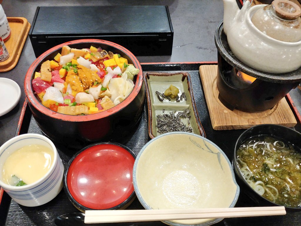 暇そうでしたが何故か刺身盛りは、刺身の売りであるはずのマグロがパサパサしていた。 エビとブリもパサパサしていた。 これで2700円超……と言った感じ。 寿司盛りもほぼ乾燥していて、これいつの?と言う感じのものだった。 たまたま?