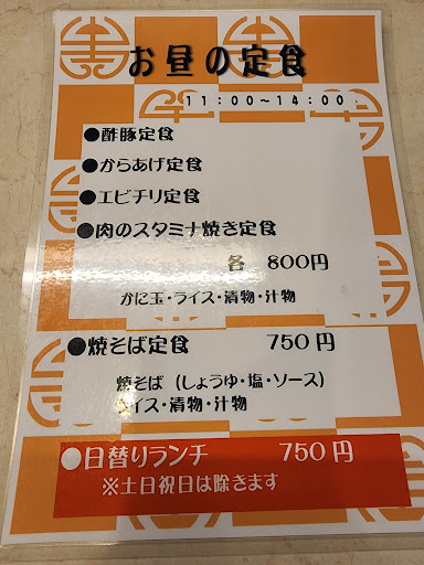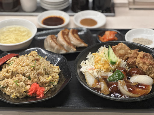 Read more久しぶりの来店。変わらない安定ある中華で、都市県内にある、大阪王将のフランチャイズですが、ここのオリジナルなメニューがありますし、サービスもオリジナルでされている感じです。店内はお世辞にも広いとは言えませんが、カウンター5人掛けと3テーブルで、昔ながらのテレビは常についていて、お昼どきは職人さん達が募る中華屋さんです。数年前は、餃子定食が定番で食べてましたが、年齢もあり軽めの唐揚げ定食にしましたが、やはりボリュームが満腹になります。店舗は、スーパーの敷地内の端っこなのでわかり難いし、スーパーのお客さんと被ると、駐車場は満タンで断念する事は多々あります。駐車場は、道挟...