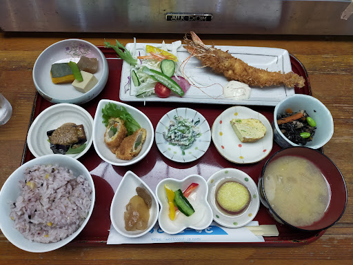 ご飯もモチモチ、手作りのおかずは万人向きの、甘すぎずくどすぎずの絶妙な味加減です。 サツマイモは、甘みや調味料一切なしの、レモンと林檎だけと店主さん談。なのに優しい甘みとさっぱり感。 いろんな野菜のピクルスは、シャキシャキとした甘酸っぱさが抜群! エビフライの大きさに驚き、ゴマ味のお豆腐、ヌタあえ、ヒジキ、そして具沢山の煮物。この味付けは、男性もおすすめの、和歌山県人としては薄め。 お味噌汁も薄めで、ぜひとも年配の方も飲んでほしいです。 ケーキも、ショコラロールはくどさがない甘さ。ホットコーヒーと抜群に合いました。