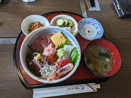 Read more目的としていたご飯やさんが行列と子供の食べられる物がなくて偶然見かけた食事処、オススメは蛤でしてが、お魚が食べたくて海鮮丼に、子供は寝起きで寒く(外は33度)店内の冷房が強くてラーメンでした、そのラーメンものすごく美味しくて完食していました、普段残すのによほど美味しかったんだと思います、海鮮丼も10種類入っていました😅温かいご飯に冷たいお刺身、酢飯ではないのでお腹がほっとしました👌 突き出しも二種類本当に満足でした、因みにこのお店目の前が海でロケーションばっちり、鉄板焼も夜はやっているようで地元の方の憩いの場所になっているのでは、子供がお店のかたに帰る時ここのラーメンは世界一美味しかったと言っていました、又...