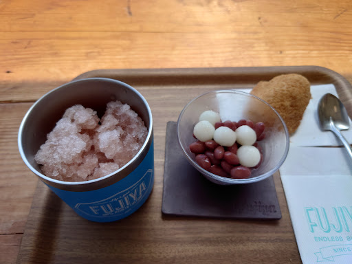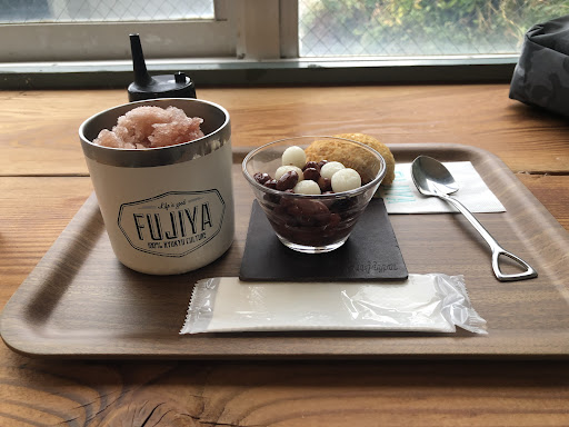 Read more駐車場は向かい側の博物館に停めました。(2時間200円) 商品はレジで先払い(交通系IC可・PayPay不可)ですが、お水のみセルフサービスで、オーダーした品はスタッフさんが座席まで運んでくださいます。平日の比較的空いている時間帯(14時頃)に訪問しました。窓側の席が空いた際に、スタッフさんに席を交換しても良いかと尋ねたら、快く了解して戴けました。イケメンな店長さんも、質問に優しく丁寧に応えてくださって、とても感じ良かったです。ミルクぜんざいは豆がしっとりして甘さ控えめで、かき氷と練乳と白玉がとてもマッチしてました。器もお洒落。青い海と空を眺めながら、リゾート気分に浸れました。...