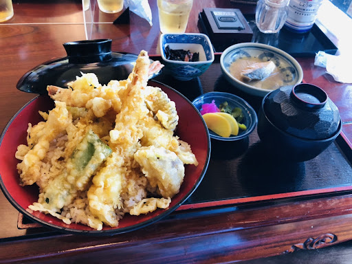 Read moreGWで周りのお店もあまりやっていない事と、ソーシャルディスタンスを保つために間引いて営業している事もあり、30~40ほど待って入店。 かなり時間もあったので、とっくに食べたいものは決めていて「伊勢海老天丼」を注文しましたが、まさかの売り切れ…。 もう口は天ぷらを欲していたので、「天重定食」を注文。 エビと白身魚はもちろん、お野菜の天ぷらもたくさん入っていてどれもサクサクで美味しい! 小鉢も2種ほど付いていて、ボリュームも満足です! 特に、お味噌汁は絶品でした♪ ここ最近で一番おいしかったかも? これだけおかわりしたいくらいでした♪ なかなか通る場所ではないのですが、空いていればま...