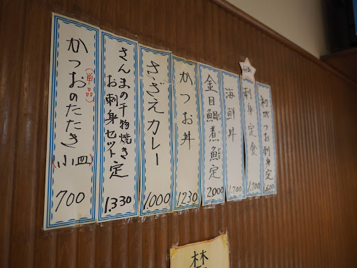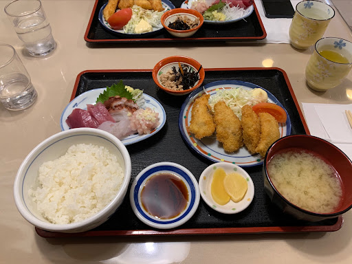 Great find! Luckily the place was open for a very early dinner @4:45pm. Welcoming and friendly couple - Google translate camera came in handy for the menu on the wall in Japanese only. The set meal is a deal! Under ¥2,000 per head for a filling mix of sashimi, rice, miso soup, pickles, and deep fried seasonal fish. Next table ordered the fried squid which looked great although we were already stuffed from the set. Help yourself to water...
