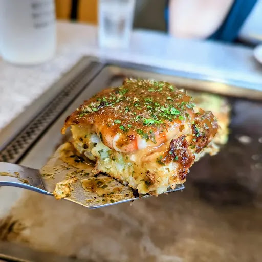Read moreフワフワでクリーミーなお好み焼き ソースはトンカツソースかマヨネーズソースが選べます マヨネーズソースはすでに混ぜ合わさ れてます その上にたっぷりの青海苔 100円追加でモダン焼きにできますが 食感を楽しむなら普通のお好み焼きがおすすめ お好み焼きが四角くてユニークです 焼そばもうまかったです