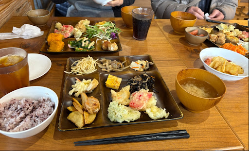 来訪日:2024.1.15 2回目の来店です。 前回は14時ごろに来店しすいていました。今回は13時ごろに来店、並ばなくても座れました。 お客さんは老夫婦やマダムのグループが多かったです。ざっと見て30名は入店可能です。 ビュッフェ形式で平日は90分、休日は60分間です。今だけ日曜祝日も90分だそうです。 レストランの外でも食事を楽しめます。しかも愛犬を連れての食事も可能です。 道の駅奥河内くらまろの里ではドッグランがあるので愛犬と楽しめるレストランは珍しくてよいですね。 こちらの店では揚げたて天ぷらがありました。 エリンギの天ぷらが美味しかったです。正月明けで、クワイの天ぷらもありました。エビやチキン、魚、グラタンなどもあります。 野菜中心でこちらの土地で収穫された新鮮な野菜を提供してくださっています。 ケールを使ったお惣菜は珍しく美味しくいただきました。ぜんざい、ミニケーキもありました。 いいお...