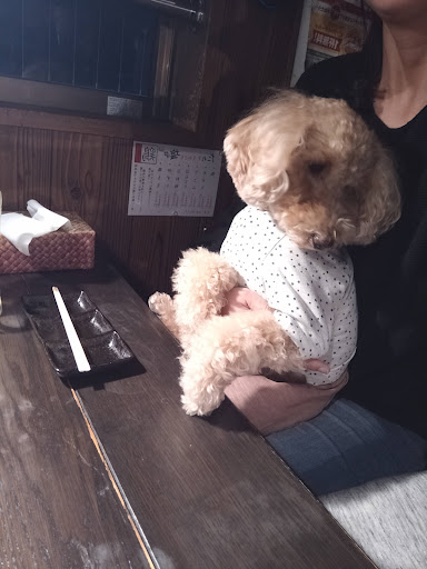 真夏の七輪焼き肉なのでエアコンがもう少ししっかり効いてたら良かったと思います。犬の毛がだめな人は2階席には上がらない方がいいです。1階席なら食べ放題コースもある様です。 なんせ貴重なわんこオッケーの焼肉屋、...