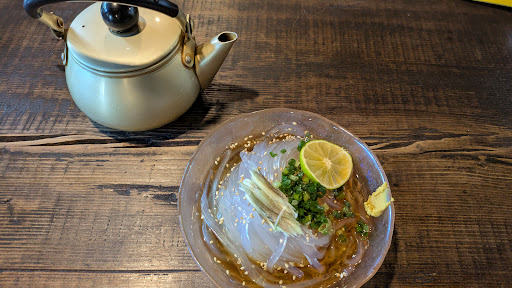 Read more観心寺の帰りに寄りました。お店の雰囲気は、お茶屋さんのイメージのまんまで、そして冷やしそうめんを頂きました。薬味が生姜とおネギで、そうめんの上にはしそ、ミョウガ、きゅうりと甘い梅干しがのせてありました。 それ程きんきんに冷えているおそうめんでは無かったですが、お部屋の中がレトロな扇風機が四方八方から回って居たのでそれ程暑く無かったので、、美味しく頂きました。 そうめんつゆも美味しくて、、、飲み干してるしまいました。 デザートにわらび餅も頼みました。 きなこ粉がとても絶妙な味で、わらび餅に絡めても余るほどでした。凄く美味しくてそして、ゆっくりできる場所でした。 レトロな雰囲気を味わ...