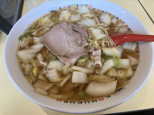 大阪市はミナミ(中央区)道頓堀の飲食店街で名を売ったラーメン屋チェーンの河内長野市にある飲食店です。 ○立地 国道170号線(新道)上原町交差点近くにありました。 北の富田林市から、南下して来ますと交差点を右折して、すぐの国道170号線(旧道)の交差点をさらに右折して、裏の駐車場側から、入ることができます。 周辺はロードサイドの飲食店が立ち並び、エディオンやホームセンター、大型パチンコ・パチスロ店が一画を作っています。 (牛丼のなか卯、カツや、餃子の王将、からよしなど) ○外観 独特な「神座」の文字と春日大社の「春日造」様式を模した神社風の建物です。 ○店内 ラーメン店にありがちな、入口から直線的に並ぶカウンター席とそれに対面する狭い厨房というイメージは、裏切られます。 入口専用口より入ると短い待合室があります。そこで、客数を確認されて、1人ならば、カウンター席。複数人ならば、テーブル席と分けられます。 カウンター席は餃子の王将を思わせるオープンキッチンを囲むように配置されていました。高目にセットされた固定スツールは、滞在時間を短くして客の回転率を早める設定です。(回転寿司チェーン店は、客の滞在時間が長いほど、客単価が上がるので、ゆったりと低目にセットしています。) テーブル席は、カウンター席側と固定されたパーティションで区切られていて、ゆったり座れました。 (ホールは、広くて、地価の安い郊外店らしさが感じられました。客の少ない時間帯は、奥まったテーブル席は、使用しないようにしていると思われます。) ○ラーメン メニューには、何種類ものバリエーションが設定されていました。しかし、スープは一種類のみです。(夏限定メニューは除く) ラーメンには、小ライスと小餃子の餃子セットをつけることができます。 私は、基本メニューの「おいしいラーメン」と「餃子セット」を注文しました。 注文してから、数分待つと2人前のラーメンを載せて、ホール担当者がワゴン車を押して出てきました。広いホールで注文品を効率よく運ぶ工夫が行われていました。また、テーブルの片付けには、🛒スーパーマーケットのカートにプラスチックのボックスを載せて、そこに積み込んで運んでいました。 ラーメンのどんぶり鉢は、内径約28cmもある大きなものでした。ラーメンはその中にたっぷり目の白菜とチャーシューを載せていました。 セットメニューの餃子はついて来なかったので、妻に先に食べ始めてもらい、餃子が届くのを待ちました。 後で聞くと、妻はラーメンが熱くて、口の中をヤケドしたそうです。 数分後に餃子が、白衣を着た調理スタッフによって到着しました。(注文のセットがそろうのに時間がかかるのは、調理工程のマニュアルに問題あり) 中太のラーメンを口に運ぶと、時間が経ってしまい麺が伸びてしまうと心配していたことが不要でした。麺はしっかりとしていました。(たぶん、製麺所で作ってから、時間が経っていて、乾燥が進んだ麺を使用したのでしょう。出来上がりをカウンターから、一歩のテーブル席に運んだだけで、麺が伸びていたラーメンチェーン店もありますから、ヨシとしましょう。) スープをレンゲで口に運ぶと 白菜の味がしました。大阪府の人が全国一消費の多い、大好きな白菜鍋の味です。 でも、たっぷり過ぎて、メニューにあった「野菜たっぷりラーメン」は、想像しただけでも、恐ろしい。 チャーシューは「煮豚」でした。スープにも『煮豚』を煮込んだ汁の味がよく出ていました。 そして、感想は「街中華の『野菜タンメン(湯麺)』みたいやなぁ。昔の『餃子の王将』のリニューアル前のラーメンにも似てる」 ○「神座」の良いところは、ホール担当の女性が、自信を持って働いていること。 それから、「おいしいラーメン」の価格が660円で、この種のラーメンチェーン店の...