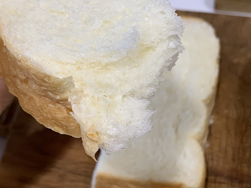 Le pain de mie est, sans exagérer, le meilleur que j’aie jamais mangé. Ce qui est remarquable, c’est qu’il se suffit à lui-même : nul besoin de beurre ni de confiture. Son goût, sa texture… tout est parfaitement équilibré.