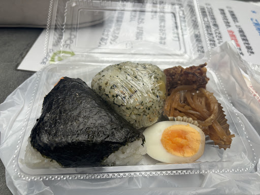 食券を買うようにと促されましたが、種類が多くて何をどう選んで良いのかわからず、面倒だったのでテイクアウトのおにぎり弁当にしてみました。おすすめの組み合わせとかあるといいのになと思いました。