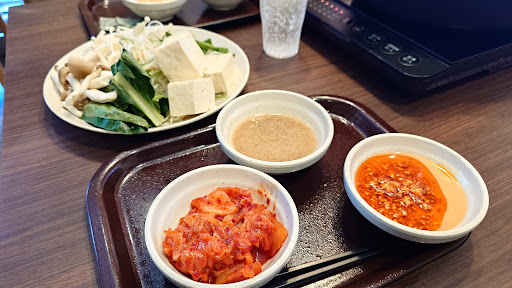 Read more安定のしゃぶ葉、アトレ7Fの所在です。同価格同品質が期待できます。握り寿司の提供のある店舗です。 週末の夕刻に2名で伺いました。牛&豚コースをお願いしました。だしは白だしと赤チゲ味噌だしを選択しました。 握り寿司は中々驚きで生産効率極大化の趣です。ブランド価格帯での顧客体験向上の企業努力を感じます。 韓国フェア開催中でした。サラダコーナーでキムチ、トッポギの提供があるなど、チゲが作りやすくなっていました。お肉の野菜巻きにサムジャンも良かったです。 猫型ロボット導入店舗です。少し前に話題になった、料理の取り違え対策も早速なされており、好印象です。 注文はタブレット方式...