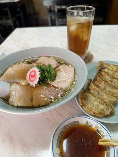 追記) 2024.5.26(日) 12:30頃 単独訪問 4人掛けテーブル ×4卓、満席 奥の座敷席も満席😱 間もなく1席空き着席 この地に暮らし始めて22年目。先代の頃から数え切れぬ程 お世話になっている。 出前での利用が多め。 久しぶりの店舗訪問。 チャーシュー麺、餃子、ウーロンハイ、注文。 どれも 安心安定の美味しさ!餃子餡はシッカリの味付けで美味い❗️チャーシューはロースと思しきパサ系。本来、パサ系は苦手なのだが…唯一、コチラのそれは美味しく必ず注文する。この噛みごたえのある あっさりチャーシュー☆*。 美味いなー。 地元民に愛され続けている銘店...