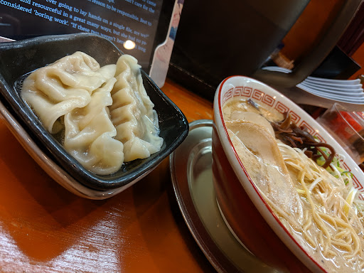 Convenient location, quick service, personable staff. Soup is good, noodles are thin-style, and there's lots of variety. It's a tonkotsu-base (pork bone broth) but you can get it in salt, miso, or soy sauce. There are a number of toppings as well and the gyoza have a nice flavor, though they're boiled gyoza, not seared. It's a small, cozy shop with counter seating and a few tables. Not a show-stopping ramen, but I have no complaints. I'd eat here again, but I would rather go elsewhere if...