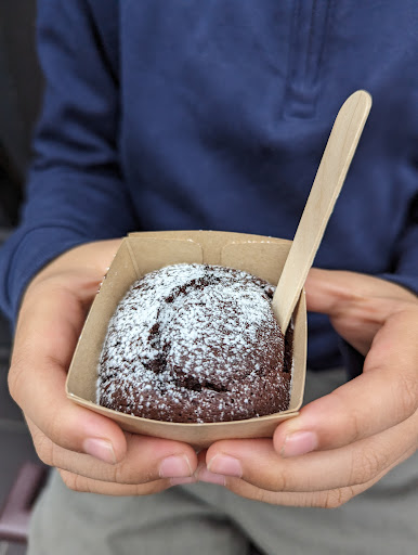 オーダーする方に向けて。 ホットショコラは紙コップで提供されますがかなり熱いので、手袋が無い方は紙コップ2枚重ねをお願いした方が良いです(対応してもらえます)。量もけっこう紙コップギリギリくらいまで入れてくれるので、持ち歩く場合は店頭で少し飲んで量を減らしてからの方が良いです。
