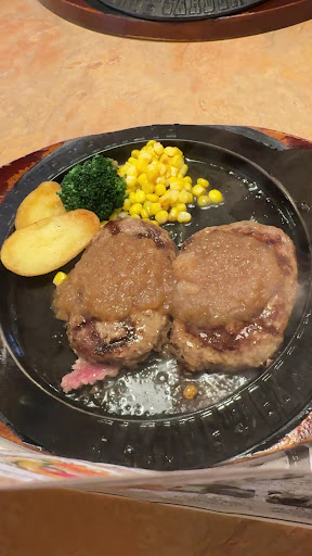 The hamburger steak was delicious, the price was reasonable and there were many customers waiting. However, it was busy probably because of the New Year holidays, and the female staff member cutting the hamburger steak looked a bit annoyed. If she could work with a smile despite being so busy, I think it would be a really...