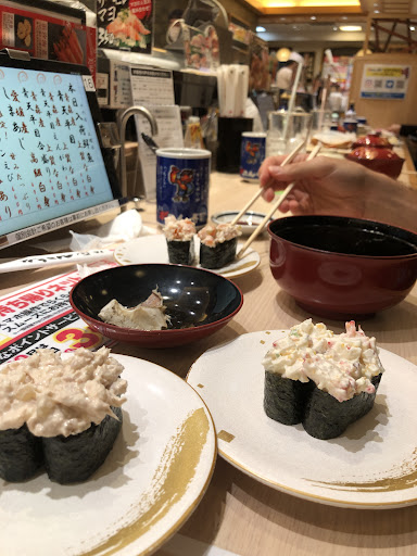Read more店員が数人真ん中に入ってその周りをカウンターやファミリー用椅子が囲う形になっています。 最近回転寿司のマナー違反が社会問題になっていましたが、この形だとおそらくそういった事を故意に行うのは難しいと思いますので、その点は比較的安心です。
