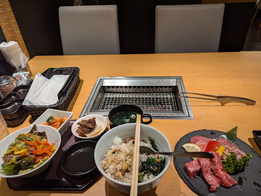 I had the koedo (小江戶) lunch set for 2,640¥. This comes with two wagyu, two beef tongue, and four (I believe) beef shoulder meat. In addition, it comes with a salad bowl, kimchi, marinated beef on tofu, a Korean style rice bowl, and a drink of your choice (I had ginger ale. There are tea, coffee, soda, juices, etc.). The food was delicious. 8 pieces of meat might not seem much, but it was very fulfilling for me. The staff is a bit slow, but with good attitude. Place is...