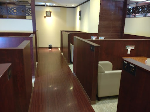 隣がビリヤード場なので 玉を打つ音や歓声、声など割と 聞こえてきますので 恐らく出入口側のお部屋はカラオケの音も聞こえています。