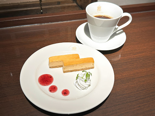 ・自家製ベイクドチーズケーキ 長方形の細長いチーズケーキが2切れお皿に綺麗に盛られた形での提供でした 食感はしっとりめで少しずっしりとした感じ 味わいとしては濃厚で甘め、少し大人なテイストの仕上がりになっていました クリームと一緒に食べるとまろやかな味わいで、ベリーソースと一緒に食べると酸味が追加され後味がすっきり目に頂く事ができました サイズ感としてもちょこっと食べる位の量だったのでティータイムに食べるにもってこいのスイーツとなっていました