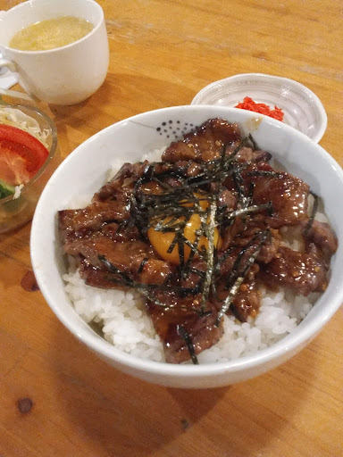 Read more最の高! 雰囲気のある山小屋風の外観に店内もテーブルやカウンターの椅子に丸太を使うなどのこだわりはマスターが一から設計して建てたそう。 店もさることながら料理が格別でした。 ランチは毎日いらっしゃる方のためにほぼ毎日同じメニューではないそうで気遣いが嬉しい。 遠方から某SNSをたよりにイチオシのカルビ丼をいただいたらお肉が最高に柔らかくて気がついたら完食してました。 マスターにおすすめされたポークジンジャーは鉄板に大きなお肉が三枚も乗ってナイフとフォークでいただきました。(もちろん別の日ですw) どちらもマスターオリジナルのタレでおなか満腹で帰途につきました。ごちそうさまです❤️