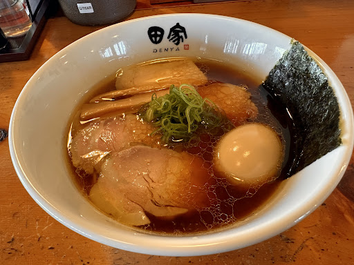 醤油好きよ集まれ! という感じで田家さんへおじゃまさせていただきました😋 田園風景の中にポツンと1軒だけあります。 なるほどだから田家?なのかな?🤔 特製中華そば並1300円をいただきます。 元気の良い声で案内され食券を渡し、5分もしない内に到着です。 店内はカウンターとテーブル席と窓際の座敷がありました。 素晴らしいオペレーションに感謝しつつ実食…