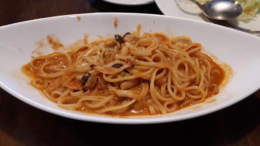 暮れに行って来ました。 生パスタが美味しかった! 平日水曜日だと言うのにボーナス支給日後だからか、おば様グループで店内満席状態でした。 焼きたてピザを店員さんがテーブルを廻ってお皿に置いていってくれるシステムなのですが、この状態だとピザ食べ放題なのですが、餌を待つ雛鳥の様です。(笑) 満席状態を基準に焼きたてピザの提供をして頂きたいと雛鳥状態の時に感じた次第です。(笑) まぁ常時満席じゃないので、我慢するしかありません。 ピザのクオリティーは1000円台の食べ放題なら普通ではないでしょうか。 可もなく不可もなくで、チーズたっぷり具たっぷりを期待してはいけません。お値段以上を期待してはいけません。 もう少し上のクオリティーのピザが良い人は、もう少し料金の高いお店を選んだ方が良いでしょうね。(笑) パスタは旨いです。旨いと思います。生パスタはモチモチでお値段以上(笑)でした。 ドリンクバーは、ここの所すっかり見掛けなくなりましたピンクグレープフルーツのジュースを発見!三杯もお代わりしてしまいました。(笑) 色々ありますが、食べ放題時間無制限ドリンクバー付き...