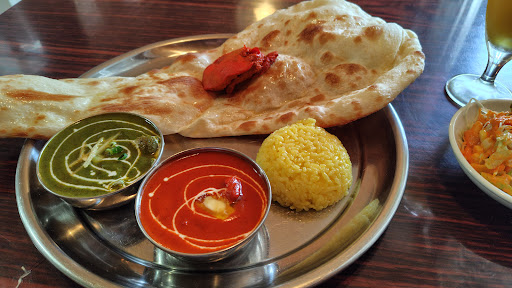 ランチメニューから「2カレーセット(1,100円)」を選択。 内容は、カレー2種・ナン・バターライス・サラダ・チキンティッカ1ピース・ドリンクと、なかなか豪華な構成です。 今回は「バターチキンカレー」と「ミックスシーフードカレー」を、どちらも辛口でオーダーしました。