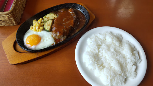 Read moreハンバーグステーキを注文しました。ハンバーグにはしっかり味がついており、鉄板の上でジュウジュウと音をたてアツアツでいただけて、とても美味しかったです。 ただ、店内の清掃が行き届いておらず、残念な感じがしました。 窓のカーテンが古くてボロボロで破れていたり、トイレの水垢、手洗い場の汚れ、壁についたほこり、照明のホコリ、床のベトつき、ちらっと見えた厨房の汚れ方。 味がとてもおいしいので、清潔感があれば満点でした。 建物が古くても、清潔さは保てます。味がおいしいのにもったいないです。ぜひお店の方にはが...