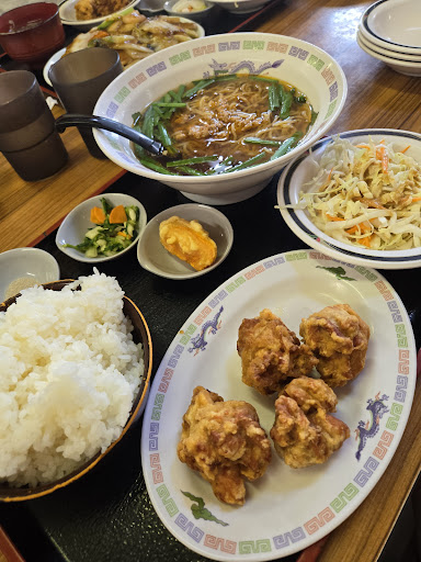 Read more以前より気になってました九龍居さん。 駐車場が空いていたので初入店。 メニュー豊富なため迷いましたが、 ラーメン+天津飯+唐揚げ+サラダ+漬物の定食を注文しました。