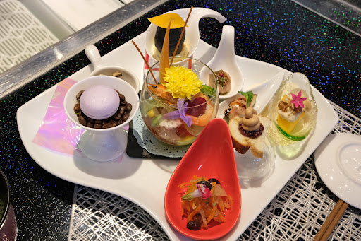 ランチで何度もおじゃましています。 ランチは ◆レディースランチ ◆ジェントルマン握り の二種類でメニュー名のとおり女性向け、男性向けという感じですが、お値段が破格で申し訳ないくらいです。 完全予約制で、12時一斉スタートで1時間のみの営業。 夜は現在常連さんのみとのことです。 九割以上が女性客という感じで、入店するとセッティング済の前菜が目に飛び込んで来てテンションあがります! エディブルフラワーをあしらった盛り付けがステキで、まるでフレンチレストランへ来たかのように錯覚します。 どう...