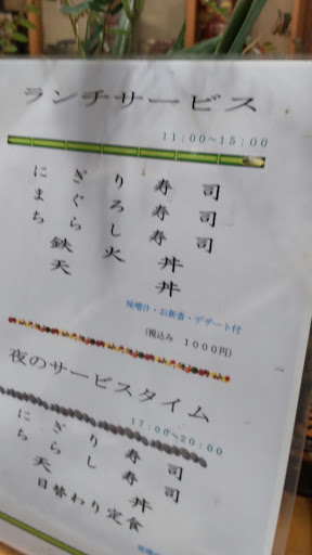 17年振りに行って駐車場の場所等が変わってたが、比較的分かりやすい。 こんだけ食べて1000円って… 安過ぎっ 小鉢と漬物、味噌汁はお代わりしたくなるような良い味。 もちろん、メインも美味しい‼️ スーパーで寿司買うよりお得感が 沢山有り。 食後はアイスコーヒーか、コーヒーゼリーかフルーツゼリーから選べる。 行って良かった。 今は夜は、基本やってないみたいだけど、電話予約すれば対応してくれるみたい。 他にもメニュー表があったみたいだけど、撮影出来ずに残念。 写真も上手く撮れなくてごめんなさい。