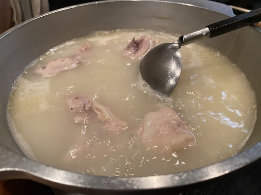 水炊きは、女将さんが、何をどの順番、どのタイミングと丁寧に説明してくれたのですが、わりと独特のコミュニケーションでサッパリした説明なので人によっては「強制されてる」「上から目線」など感じる人もいるのかも。 ただ、水炊きのように自分たちである程度やるものは、美味しく、安全に食べるために正しい理解は必要だし、わたしは好感を持ちました。