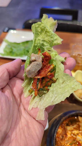Read more川口駅東口を出て「川口キャスティ」のエスカレーターを降りたところにある「ソウル市場」という最近赤羽駅西口のアピレにも出店している韓国スーパーマーケットの2階の韓国レストラン。 おもしろい人形とメニューが気になったのでランチに入ってみました。 店内はそのままソウルのレストランです。 キレイで大きく、とても活気があります。若い女性のお客さんが多いですが、おじさん一人でもちゃんとテーブルがありました。 階段の壁にはプロジェクターで韓国ポップが流されています(音は出てません)。 各テーブルに端末装備です。端末なので言葉ができなくても迷わず注文できます。これはすばらしいです。 今回注文したのはポッサムのランチセットと生ビールですが、セットのおかずの量は韓国現地そのままのすごいボリュームです。びっくりです。安易にビールのツマミにいいかなと思ってましたが、サンチュに味噌をつけて食べているだけでおなかいっぱいになるくらいです。 ランチなのにとんでもないすごいボリュームです。 ソウルに来ちゃったみたいです。 ボッサムだけだと飽きてしまうところに数種類のおかずと海鮮チゲがいい感じで、ビールがグイグイすすんでしまいます。 海鮮チゲがびっくりするくらいおいしいです。すごいマッシソヨです。おまけで出てくるレベルじゃないです。 最後はごはんにかけていただきました。〆にバッチリでした。 せっかくなので韓国のザクロサワーも注文してみました。こちらはかなり甘いのです。おじさん向けでありませんが、日本にはないサワーです。 おかずがたくさんあって、おいしくて、とっても楽しいランチでした。 おなかもいっぱい。 次回はサムギョプサルを食べたいですね。しかし、1人では食べきれないと思われますので大食いくんを誘いたいと思います。 カムジャタンもいいかもしれませんね。 本場ソウルのサービスをタップリ受けられるなんともすばらしいお店です。 下のスーパーマーケットで買い物してこちらでおなかいっぱい食べるのも大アリです。 食べた後だとおなかいっぱいで買い物どころじゃないです。 こんなランチセットにはなかなかお目にかかれないと思います。 ...