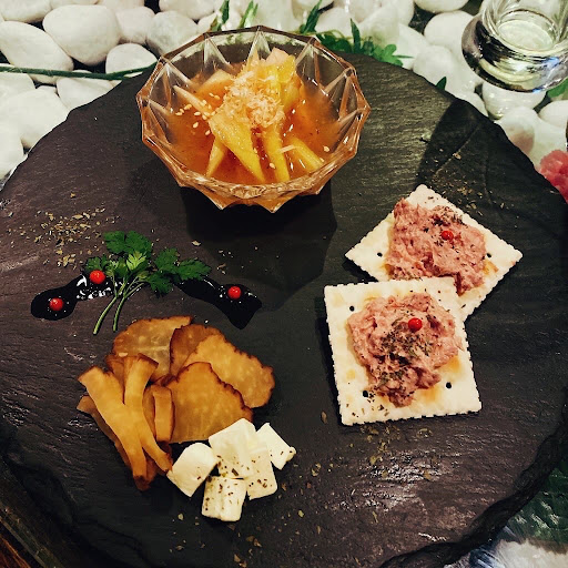 Read more隠れ家…というほどは敷居が高くなく、チェーン店のような雑然とした感じもなく居心地のよいお店です。店内はさほど広くなくインテリアも落ち着いています。 スタッフの方々は鍛えられていると云うよりはお店にあったスタイルを理解して動いているように見えます。 グラスワインを注文したらボトルを見せてくれて「こちらのワインです」と。ソムリエ? 料理の提供も遅くなく、盛り付けもオシャレ感が出ています。もちろん味も間違いありません!少々お値段が近隣よりは高めかな…。そ...