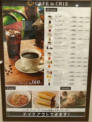 This is a cafe located on the 4th floor of "Kawaguchi CASTY," a commercial complex at the east exit of Kawaguchi Station. The east exit features a relatively large rotary, but there is an elevated walkway connecting the station and the commercial complex, allowing easy access without the need to wait at traffic lights. This also makes it convenient for wheelchair users and those with mobility impairments. Since the cafe is situated in a section of the commercial complex, the interior is not particularly spacious, with approximately 30–40 seats. Most of the seating is designed for one or two people, making it less suitable for large groups. However, the aisles between tables do not feel overly narrow (though not all of them are spacious), so wheelchair users and travelers carrying large luggage, such as suitcases, should be able to use the cafe comfortably. As the cafe is on the 4th floor and its windows face the rotary at the east exit of Kawaguchi Station, the window-side seats offer a nice view. Many customers take their time relaxing, especially by the windows. On weekends, this may result in slower table turnover, so be aware that you might need to wait for a seat. The quality and variety of drinks and dishes, as well as the service provided by the staff, are on par with other CAFÉ de CRIÉ locations. However, since the cafe is inside a commercial complex, it does not open early in the morning like some...