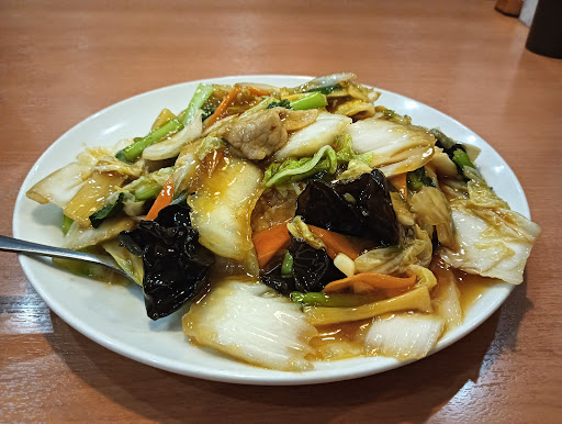 追記:後日、混雑時間を避けて遅めのランチを取るために再び訪問しました。 牛バラ入りニンニク味チャーハン&牛肉とたまねぎの黒胡椒味焼きそばを注文しました。 店内空いてることもあり数分でチャーハンが運ばれて来ました。 ニンニクのいい匂いがたまらないですね! パラパラチャーハンうまい🎵少し強めのニンニクの風味、牛バラやネギ等の具材のバランスがとてもGOOD👍️特にネギのシャキシャキ食感がしっかり残ってるのが個人的にはとても良いアクセントでした。 チャーハン配膳からさらに数分して焼きそばが運ばれて来ました。 普段焼きそばはソース味か塩味のどちらかを選択になることが多く黒胡椒味というのに興味出たので注文。 黒胡椒のパンチ力ある味付けスゴいですね。 かなり濃いめの味付けでしたが野菜が多めに入ってるおかげで濃いめの味付けがいい具合に緩和されててバランス良いと思いますよ。 恐らく普通の味付けで野菜多めに入れると野菜の水分等で味が薄くなりがちなので濃いめにしてるのではないでしょうか。黒胡椒味新鮮でした🎵 2品なんとか完食しましたがかなりのボリュームで超満腹...