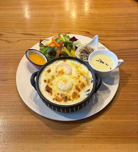 【食事】 ドリアのランチプレートをいただきました。今まで食べたドリアの中でも、チーズとクリームがしっかり感じられて最高に美味しいです^_^お米とクリームの量のバランスも絶妙で、最後まで美味しくいただけました。