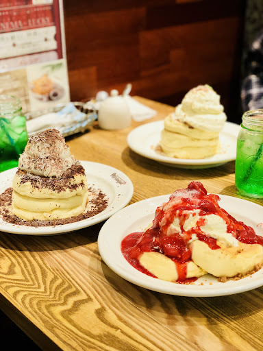 テイクアウトできると言う割にテイクアウト慣れしてなくて、すぐ食べると言ったのにパンケーキの上のクリームが別添え(ドリンクのカップに入れられて)になって食べ辛かった。買う前に“別添えにするか?”と聞かれて“スグ食べるからしなくていい”と答えたハズなのに。また、ドリンクは手持ちで良かったのに袋を更に用意され袋代を2枚分請求されていた。それは断りがなかった。 ハニージンジャーと言う飲み物を頼んだがまずかった。本物のジンジャーがすりおろして入ってるとは思わず、もっと確認すべきだったのかもしれない。 限られたメニューしかテイクアウトしてないのに、まさかそんな独特なドリンクを仕込まれてると思ってなかったので油断しました。 ハニージンジャーは本当にオススメしませんっ!ジンジャー好きでも好きなのかなぁ?ってくらいいけてなかった。 パンケーキは美味しかったです。 ちなみに、店内が混んでた場合、持ち帰りにして下の階のフードコートで食べるといいです。ただお店のテイクアウトでの対応がそれだといい事ないかも。せっかくのおいしいパンケーキがもったいない。 こんな時期なのだからテイクアウトをもっと大事にした方がいいと思う。下には大きいフードコートもあるんだからもっと工夫を望みます。 ☆☆星2つの理由はパンケーキとクリー...