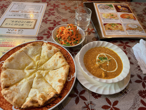 川口駅から歩いて15分かからないくらいの住宅街にあるカレー屋さん🍛 名前からしてカレー屋さんって思ってなくておどろきました。店内は広々していて明るく清潔感がありました! 店員さんは、お揃いのくま⭐︎さんTシャツ着ていて、みなさん愛想よく、優しい感じでとても居心地の良い雰囲気でした。日本語も流暢で上手なので、日本語通じなくて焦ったっていうか心配はないです! ワンカレーランチを野菜カレーでいただきました。カレーは6種類から選べますが、ダルカレーがなくてほぼお肉のカレーです。 セットのサラダは、セットだけどたっぷり盛られていてオレンジ色のあの美味しいドレッシングでした! 野菜カレーはかなり甘口で、具材溶けてる系のポテポテ系のカレーでした。写真ではごろっと野菜が入ってる感じだったんですがお写真とは違うので頼むとき注意です⚠️お味はスパイスあまり効いていないのでスパイスガッツリ系求める方は物足りないかもしれませんが、普通に美味しいカレーでした😄玉ねぎがよく溶け込んでて私はとっても好きな味でした! ただ残念なのがナンはチーズナンを選択できず、単品注文しかできない点です💦 単品で頼んでも1200円くらいで収まるのでちょっと高いカレー屋さんとか行ったくらいなんですが、選べたら嬉しかったな〜😂 なのだ普通のナンはお持ち帰りにしてもらって、チーズナン単品注文しました。チーズなんは、チーズたっぷりって感じではありませんが、程よいくらいにチーズが入っていて生地は薄めだけど、もちもちな感じで、甘いとのしょっぱいのの中間です。 全体的にバランス良くて、美味しカレー屋さんでしたし、接客もとても気が利いて良かったです!ただチーズナンがあったらなお良かったので星は4つにしておきます! 普通にカレーの美味しさだけでいえば、5つです! 夜も今度は来てみたいなと思いま...