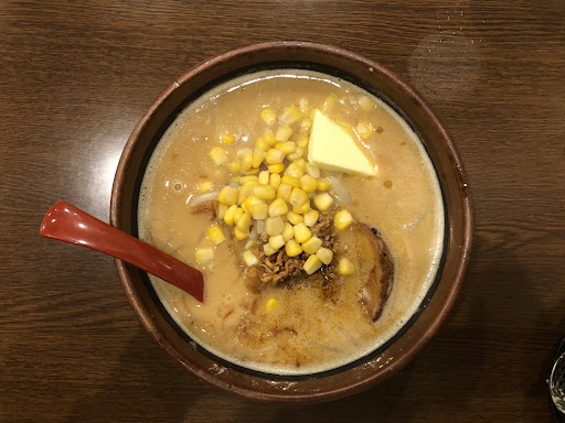 国道122号線を北上しハーレーダヴィッドソンを越えてレッドバロンの1軒手前にある店。 独特な外観は気を付けて走っていれば見落とすことはない。割と広目の駐車場が日曜の8時半だというのに満車状態。なかなかの人気店と見受けられた。 車を降りて中を見ようと窓ガラスに目をやると曇りガラスには、北海道、信州、九州、伊勢、江戸前の文字が。 この店は単に味噌ラーメンを出すのでなくて、地域ごとの味噌を選べるのかと興味が湧いた。 外でも何組か待っていたところを見ると、まずは受付が必要か。入ってみると、e-Parkの受付システムが。指示通りに整理券を出し、注意書を読んでみた。QRコードを読み込み、メール登録すると順番が近づいたらメール呼び出ししてくれるという。面白いのでやってみた。 中で待っている人が多いのとメール呼び出しも面白くて外で待つ。 入口すぐのところに麦茶の無料サービスがある。すでに気温は下がっているのでそれほどの必要性はなかったのだが、せっかくなのでいただくことにした。 サーバーの脇にある紙コップを取り、プッシュ型の蛇口を押すとドドドと出てきて清涼感。ありがたい。 外で待っているとメニューを渡してくれて、何があるかな?と覗いてみる。基本メニューは看板というか窓ガラスどおりの北海道、信州、九州の各味噌ラーメン。 北海道は濃口、信州はやや濃口、九州は甘口なのだそうだ。 伊勢は見付からなかったが店内に入って良く見ると目立つ位置に江戸前味噌ラーメンのポスターがあった。赤と銘打ったそのラーメンも惹かれたが、まずは基本のメニューから。 北海道味噌ラーメンを頼むことにした。とは言うものの、写真を見るとチャーシューも入っていないように見えたので、いきなりとは思いつつもチャーシュー麺を注文。大盛にもできたがいつも食べ過ぎてしまうので今日は普通盛り。 ところが整理券の番号と合わせることもなくちゃんと注文は通るのだろうかと不安を感じながら待つことに。 店の外には食券を買えという貼り紙もあるので券売機を求めて中に戻るも食券はなし。 再び外にでるとそれほど待つこともなくメールが来たので、中に入ってみるとすぐに席に案内された。最終的には店員がちゃんと管理していないといけないのだろうが、いいシステムかも。 水のほかに、なんとマスクが汚れないようにポケット型の収納袋。なかなかの心遣い。使いはしなかったがこれも面白い。 しかもあまり待つこともなく注文どおりのラーメンが到着。 写真どおりにじゃがいもと分厚いチャーシューの乗った味噌ラーメン。真ん中の山盛りは何かと思って見てみたら、挽き肉の山盛りだった。 まずはレンゲにつゆを取り味見。しっかりとした味噌の味はラードのふたはないものの八重洲の番外地を思わせる。 麺はあまり好みではない中太の縮れ麺だが特に抵抗もなくするすると口の中に入ってきた。 炙りチャーシューは味噌漬けということだが中にまで味噌が染み込んでいるかというとそうでもなく普通の厚切りチャーシュー。 それでも全体的にしっかりとしたつゆの味に支えられて苦もなく完食。食べてみれば大盛を頼まなくて良かったと思えるそこそこの量で胃はすっかり満たされていた。