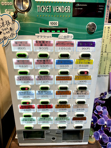 金曜日16:50頃入店。 店内はカウンター7席くらいかな あとテーブル席が2つある かなり隠れ家的な雰囲気となってます。 私の他に4〜5人が入っていたのですが ラーメンが到着する頃には 外に待ちが出来ていました。 注文したのはオススメの 熟成鶏そば(醤油)¥900 スープを飲み 細麺を一口食べた瞬間 追加で替え玉¥120とまかない丼カレー¥380を即座に券売機で購入しました。 私は細麺がわりと苦手な方なのですが この濃厚なスープにやや硬めの細麺はほんと良くあってました。 スープをひとくち飲んで このお店は当たりだと判断するまでに0.1秒も必要ありませんでした。 画像では見えないのですが つくねのようなものも沈んでたり 上にのった3枚の鳥チャーシュー?かな それもほんと美味しかったです。 こうなると気になるのは まかない丼のカレーですが これも等しく美味しい✨ ちなみにラーメンどんぶりは完飲すると 底に金の文字が浮き出てきます。 そして ここのメニューには 心踊るようなラインナップがいっぱいでした。 次回は平日のランチを狙って来てみたいと思います。 たった2人でこの店内だけで無く出前館なども受けているようでしたから ほんと大変そうでしたが この味を知れば リピーターになるのは必然でしょう。 久々に 美味しいラーメン屋さんに出会えて幸せな気持ちになりました🎶