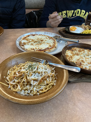 駅近くのサイゼリヤに比べると落ち着いた感じで、のんびり食事を楽しめる雰囲気。テーブルは2人掛けではなく、4人掛け、6人掛けなのでゆったり...